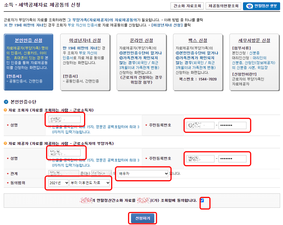 연말정산 부양가족 등록방법, 부양가족 자료제공 동의