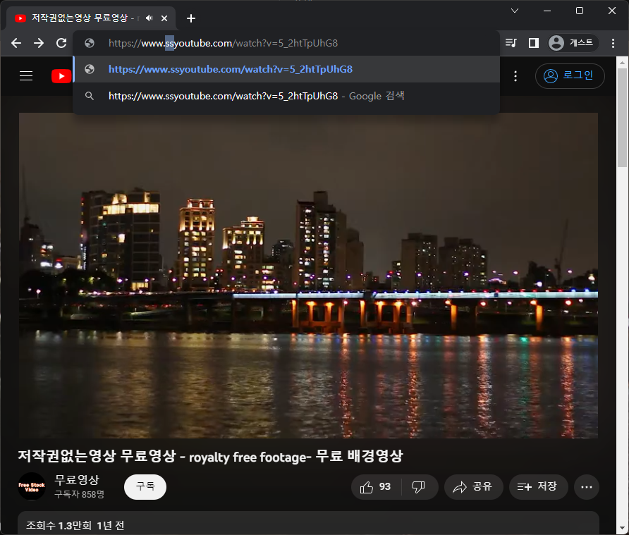 위 사진과 같이 유튜브 영상이 있습니다. 저 같은 경우는 저작권이 없는 영상으로 진행을 해보겠습니다. 본인이 다운로드하고자 하는 영상을 인터넷 브라우저 창에 띄웁니다.