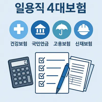 국민연금과 건강보험은 근무 기간과 소득 조건에 따라 가입 여부가 결정되지만, 고용보험과 산재보험은 근로시간과 관계없이 모든 일용직 근로자가 의무 가입 대상입니다. 따라서 하루만 일해도 고용보험료 0.9%는 급여에서 공제됩니다.