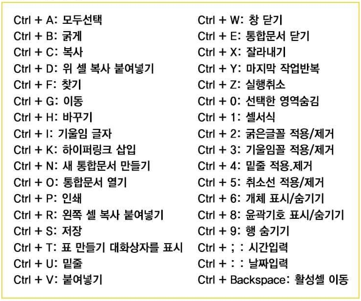 그래서 엑셀을 사용할 때 유용한 단축키들을 좀 모아 보았다.