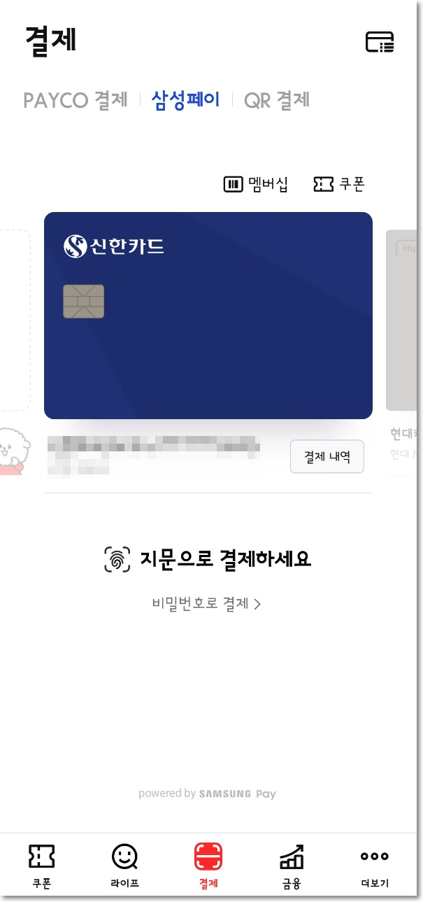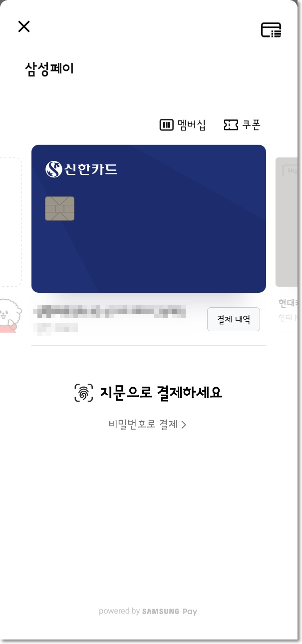 - 삼성페이 : 결제 시 추가 포인트가 없음. 가맹점 수가 많음.