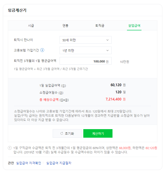 - 네이버 실업급여 계산기는 대략적인 금액과 기간만을 제공합니다. 정확한 금액과 기간은 고용노동부나 관련 기관에서 확인해야 합니다.